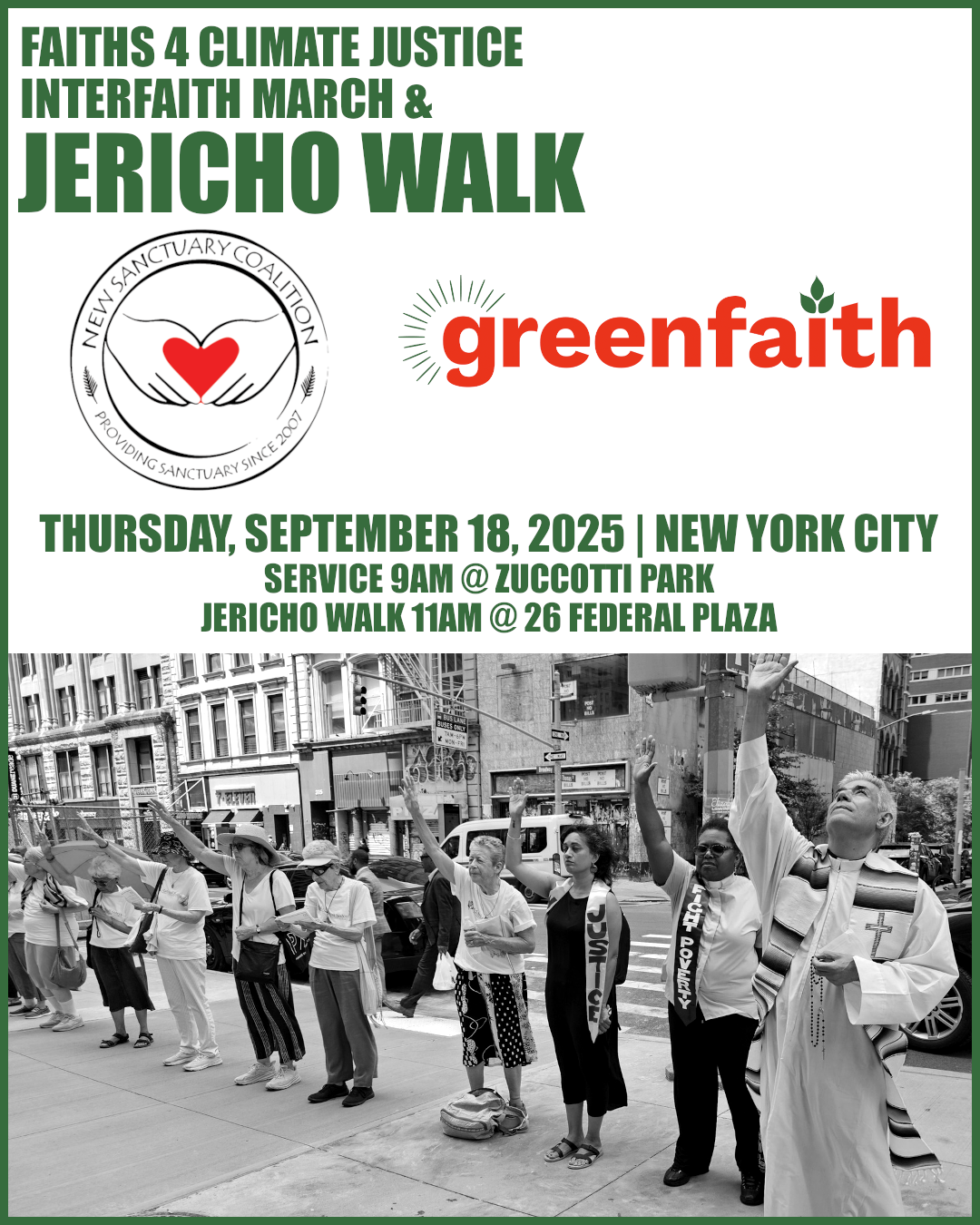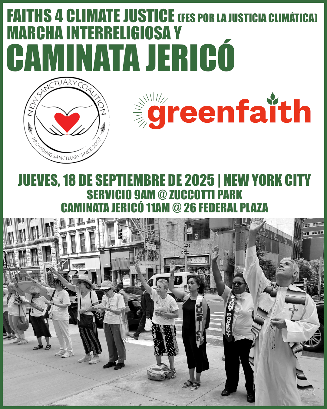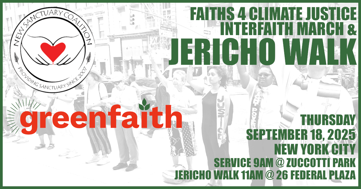 On September 18, we will be joined by Greenfaith’s Faiths 4 Climate Justice action, which starts with a prayerful service at Zuccoti Park at 9am. Learn more here.Â