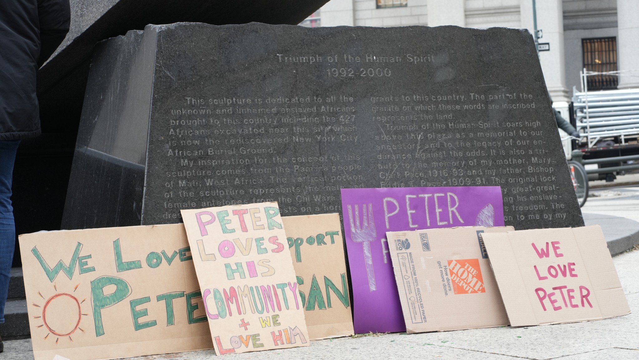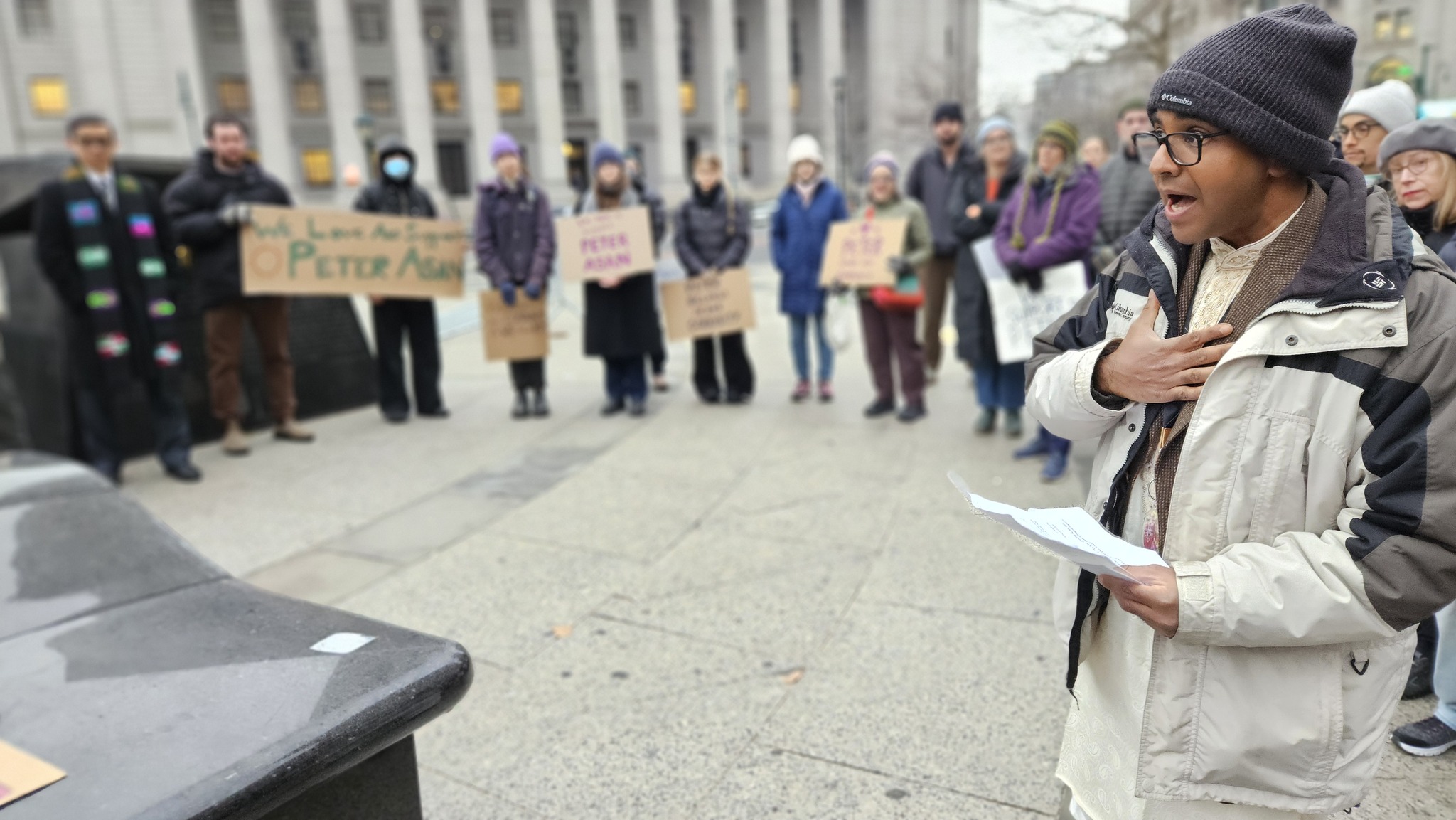 Peter stands with New Sanctuary Coalition allies at a letter-writing session in Brooklyn