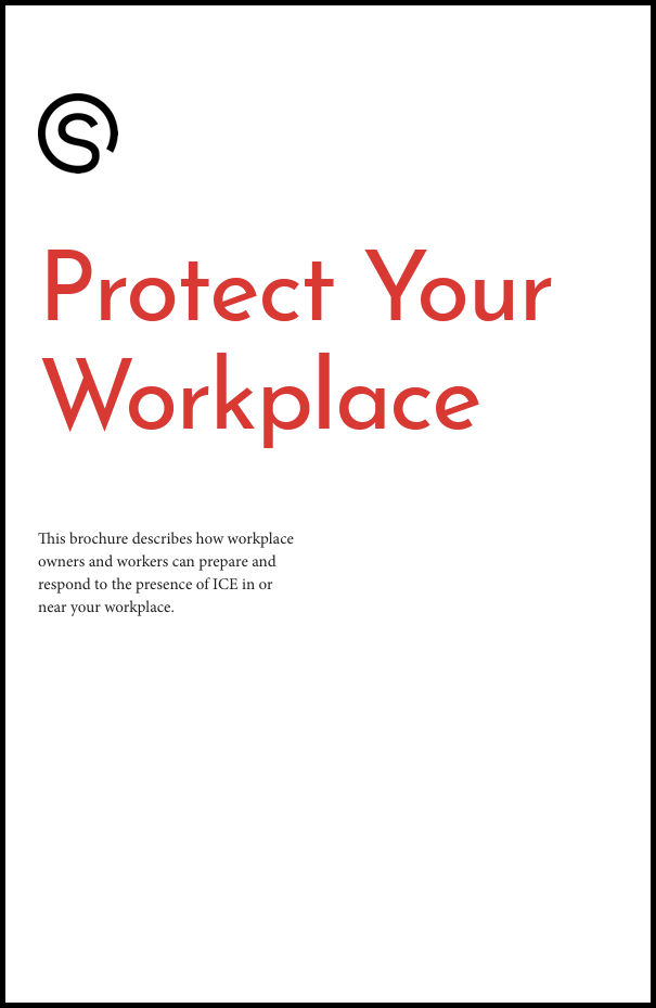 Protect Your Workplace guide:A guide specifically aimed at helping customers, employees, owners, managers, and others about how to ensure that all present in and around a business are asserting their rights by preparing and protecting themselves from ICE incursions. It includes easy dos and don'ts when it comes to encounters with ICE, how to distinguish enforceable judge-signed warrants from unenforceable ICE-issued warrants. |